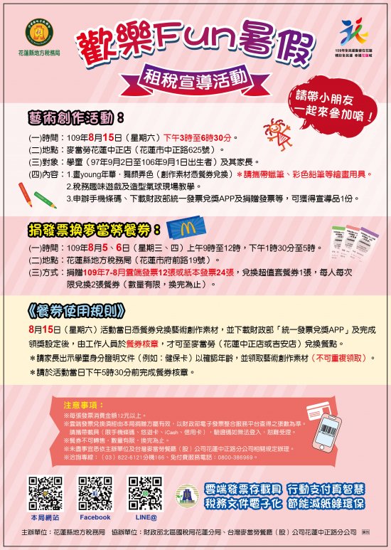有關「歡樂Fun暑假」租稅宣導活動,鼓勵大家參加。
